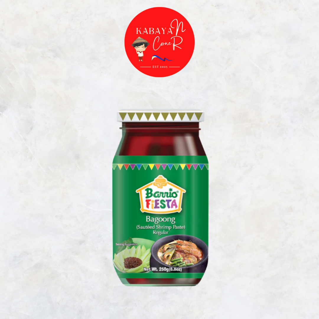 Barrio Fiesta Regular Bagoong has the signature delicious flavor of authentic and pure [alamang] shrimp paste! With its perfect blend of saltiness, your favorite Filipino dishes now has a perfect match for culinary masterpieces and savory dipping delights.