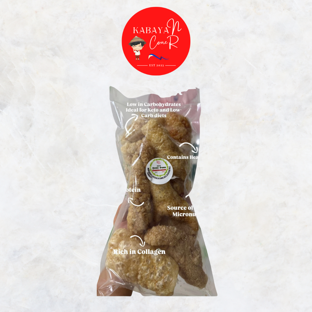 Pork chicharrón is a crispy, golden snack made from pork skin that’s seasoned and fried until light, crunchy, and full of savory flavor. Each piece delivers a satisfying crackle with a rich, salty taste and a hint of natural porkiness. Enjoyed across many cultures, chicharrón is perfect as a snack on its own, paired with dips, or used as a crunchy topping in dishes like tacos, salads, and soups.