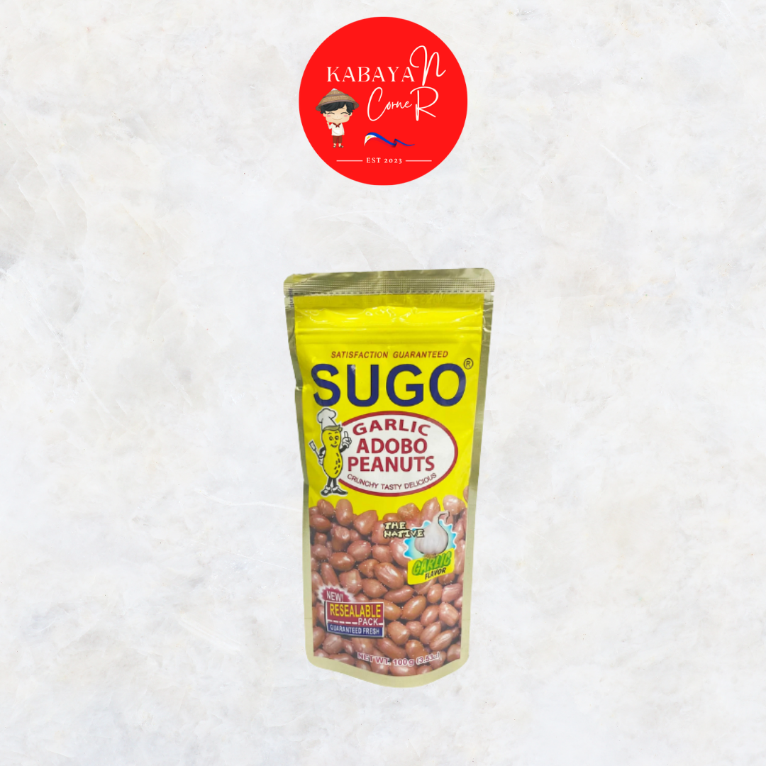 SUGO Garlic Adobo Peanuts are a delicious and savory snack that combines the crunch of premium roasted peanuts with the bold flavors of garlic and adobo, a classic Filipino seasoning blend. Each bite delivers a satisfying mix of nutty goodness and the robust, tangy taste of adobo, enhanced with a garlic kick.