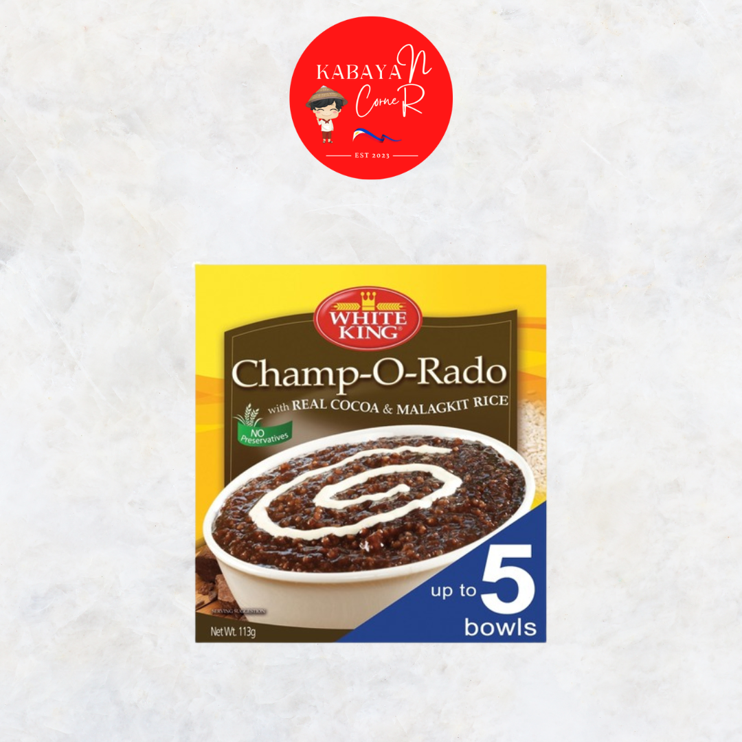White King Champ-O-Rado Chocolate Rice Porridge is a traditional Filipino-style chocolate rice porridge mix made with glutinous rice and cocoa. It creates a rich, creamy, and slightly sweet dish with a comforting chocolate flavor.
